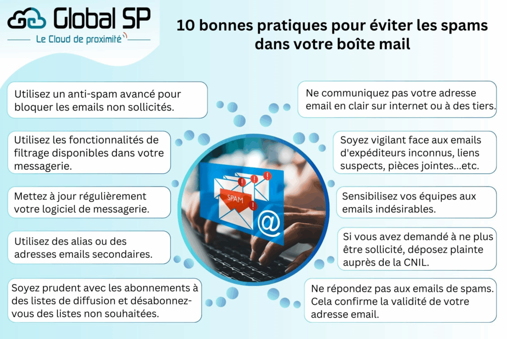 La gestion efficace des emails est devenue essentielle pour maintenir la productivité et la sécurité de votre entreprise. L’une des principales préoccupations liées aux emails est la présence de spams, ces emails non sollicités qui peuvent encombrer votre boîte de réception et compromettre la sécurité de vos données. Voici dix bonnes pratiques à suivre pour éviter les spams dans votre boîte mail d’entreprise :